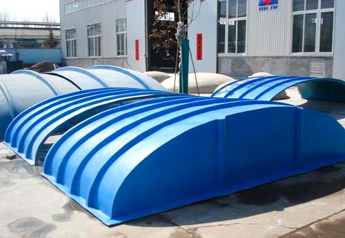 玻璃钢凭借优异的力学性能轻质高强,耐腐耐老化性,以及可设计性强的 特点,越来越成为化工防腐,污水处理等行业应用的主流材料。 玻璃钢在是目前池体加盖应用广泛的一种材料,具轻质高强、耐腐蚀性能好、造价低等诸多优点。其相对密度在1.5∼2.0之间,只有碳钢的1/4∼1/5,可是拉伸强度却接近,甚至超过碳素钢,而比强度可以与优良合金钢相比。玻璃钢即FRP是良好的耐腐材料,对大气、水和一般浓度的酸、碱、盐以及多种油类和溶剂都有较好的抵抗能力。